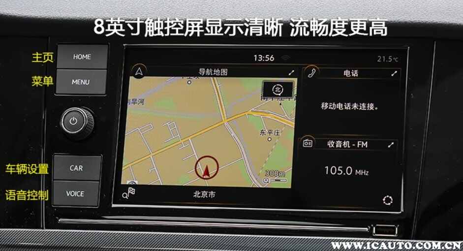 大众宝来配备了8英寸的触摸屏,屏幕左侧有物理快捷键,使用方便。中控屏下有传统的物理按键,使用也是非常简单方便。下面是中控按钮图解。