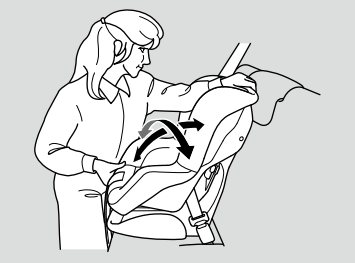 9. 前后左右摇动儿童保护系统以确保其牢牢固定;几乎感觉不到移动。 10. 确保儿童能触及到的所有未使用安全带均已锁止。