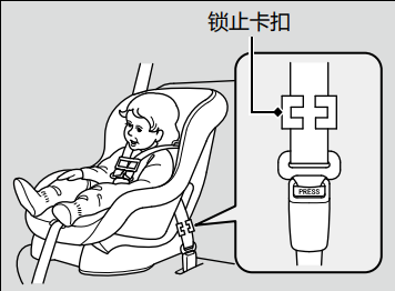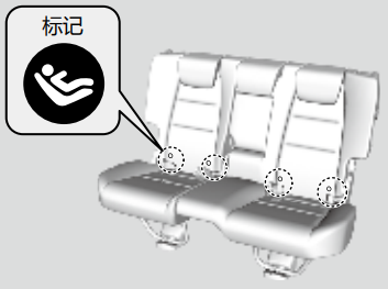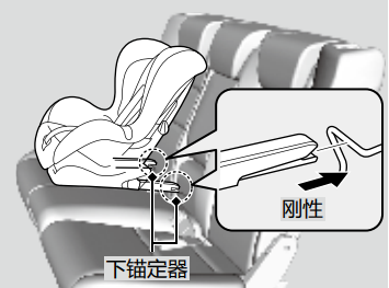4. 将儿童保护系统放置在车辆座椅上,然后根据儿童保护系统随附的说明将儿童保护系 ▲ 统安装至下锚定器。 当安装儿童保护系统时,确保下锚定器未 被安全带或任何其他物体阻碍。