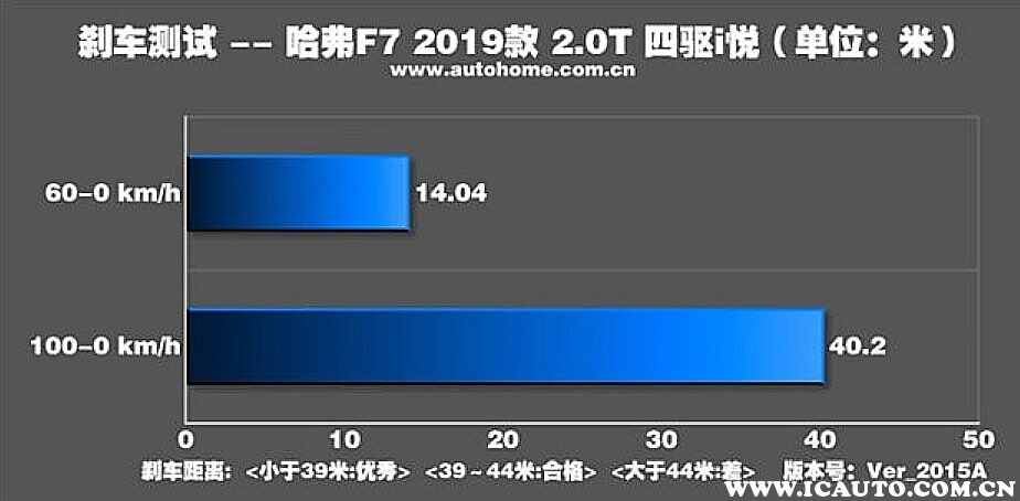 通过实测,哈弗F7在100-0km/h刹车距离为40.20米,在60-10km/h刹车距离为14.04米。