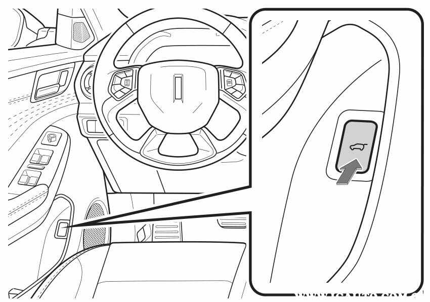 3.驾驶员侧车门为解锁状态时,按压后背门微动开关的同时向上拉起。