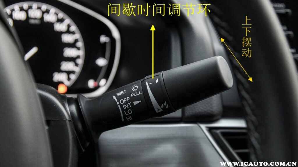 本田inspire雨刮器的开关如下图所示。有些车辆的雨刷器是可以有自动感应式的选择,下雨时雨刷感应器会通过雨量传感器感应雨滴的大小自动调节雨刷摆动的频率。