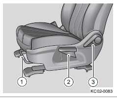 沿箭头方向推动座椅前后/座垫高度调节开关,座垫高度会降低或升高。