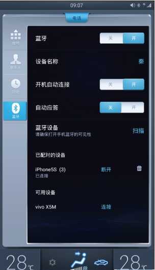 比亚迪秦中控多媒体屏可以通过蓝牙与手机连接,从而实现播放手机音乐以及打电话等功能。