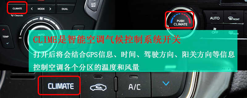 CLIMATE字面的意思是“气候、氛围、状况、局势”。如果汽车有CLIMATE按键,一般是在空调操作面板中,是智能空调气候控制系统按钮。CLIMATE按键给人感觉有点类似汽车自动空调开关的意思。汽车空调将会结合GPS、时间、驾驶方向、阳光方向等信息对空调各分区的温度及风量进行全面的智能调节。也就是会根据外界温度和设定的温度来进行自动调节以营造更舒适的驾乘体验。